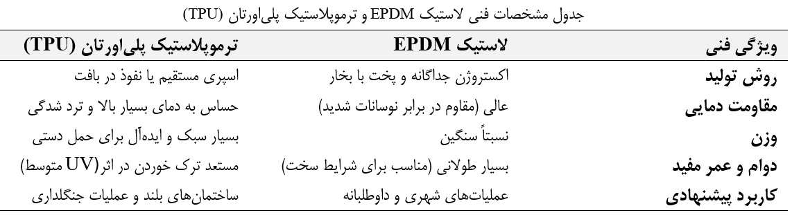 تحلیل‌های فنی نشان می‌دهند که لاستیک EPDM به دلیل پیوند مولکولی قوی با ژاکت در فرآیند ولکانیزاسیون، پدیده جدایش لایه (Delamination) را به حداقل می‌رساند. در مقابل، پلی‌ اورتان به دلیل سبکی، در بسته‌های شیلنگ که آتش‌نشانان باید به طبقات بالای ساختمان‌های بلند حمل کنند، ترجیح داده می‌شود.