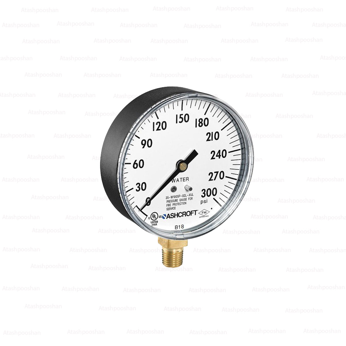 _مانومتر فشار قوی 35W1005PH ساخت برزیل. _سنجش فشار آب در سیستم اطفای آبی اسپرینکلر. _مقاومت بالا نسبت به لرزش، ضربه و نوسان آب. _حداکثر فشار کاری 300PSI/20 bar.
