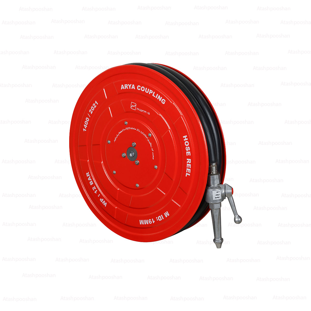 هوزریل آتشنشانی آریا شامل یک عدد قرقره هوزریلی 30 متری، شیلنگ نیمه سخت فشار بالا "1،