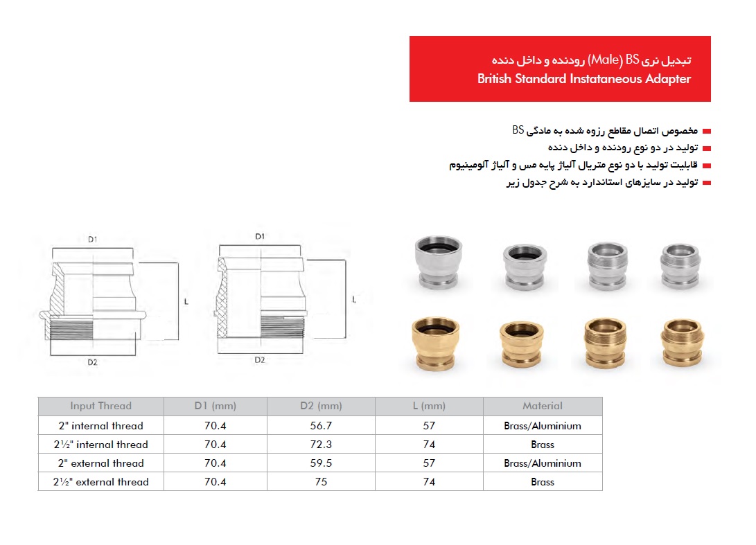 • مناسب جهت اتصال مقاطع رزوهشده به مادگی BS